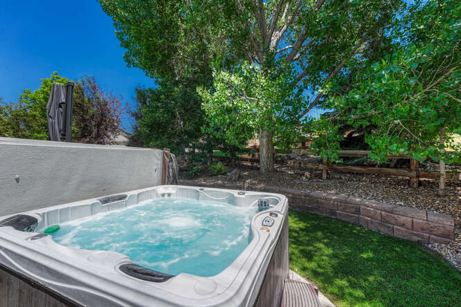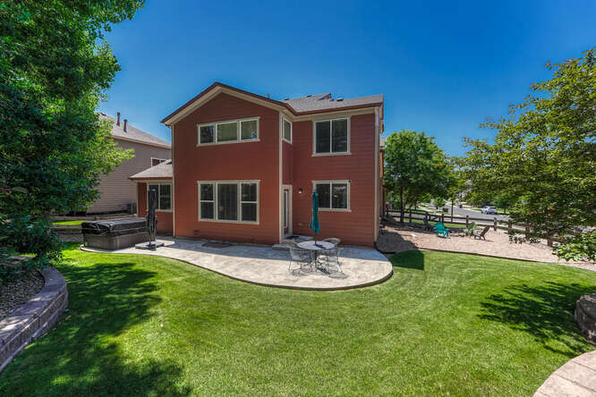 “Wow Factor” can be extended to the backyard which is beautifully landscaped and designed for gathering and relaxing either in the sun or shade. It includes a stamped concrete patio, gas firepit, the afore-mentioned private side patio, a play area, and mature trees for privacy and natural cover. As a bonus, the hot tub is negotiable.