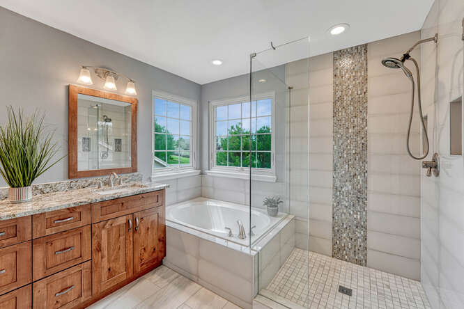 Upstairs, the well-designed bedroom layout includes four bedrooms and a convenient laundry room. Oversized PRIVATE PRIMARY RETREAT with French doors, and fully updated ensuite with custom-tiled, frameless glass shower, modern cabinetry, updated lighting, and walk-in closet with built-in organizers.