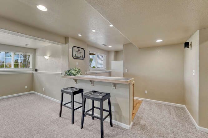 FINISHED BASEMENT with two additional bedrooms, full bathroom, large rec room, wet bar, and a custom HOME BREW ROOM with deep sink—perfect for hobbyists. OVERSIZED STORAGE ROOM ensures ample space for all your extras.