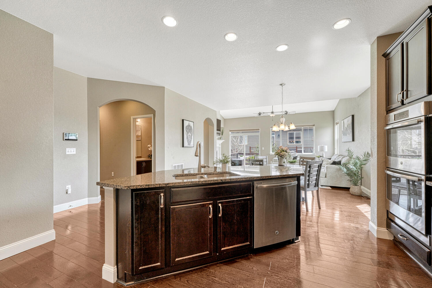 The open-concept kitchen blends seamlessly into the expansive ๐๐๐ฆ๐ข๐ฅ๐ฒ ๐ซ๐จ๐จ๐ฆ. So, grab a snack and relax or gather with guests while enjoying the warmth and ambiance from the gas fireplace in the winter. You choose how much natural light pours in through generous windows with your bottom-up/top-down blinds. When itโs time for some fresh air and that amazing sun your backyard is waiting with itโs hardy ๐๐ซ๐๐ฑ ๐๐๐๐ค built to endure Colorado’s summer and winter elements. Thereโs also a robust ๐ฉ๐จ๐ฐ๐๐ซ ๐๐ฐ๐ง๐ข๐ง๐ to provide shade at your command when the Centennial Stateโs sun shines too bright. Between the window well covers and the yard being fully fenced your furry family member is safe in this secure, low-maintenance outdoor space.